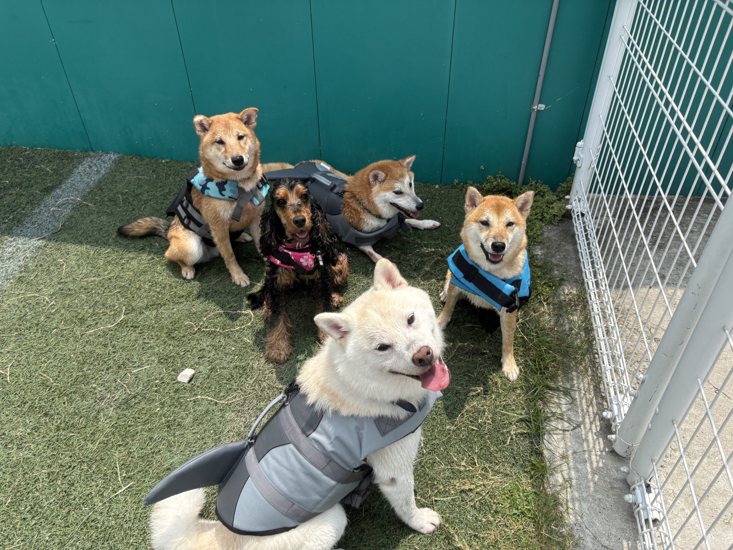 柴犬たちが集まると、なんとも言えない風格と団結感が。夏の戦士たち集合!一匹柴じゃない子が紛れていますが…笑