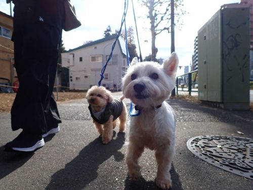 スタッフがアドバイスしながら、神田川の方までお散歩しました🐕