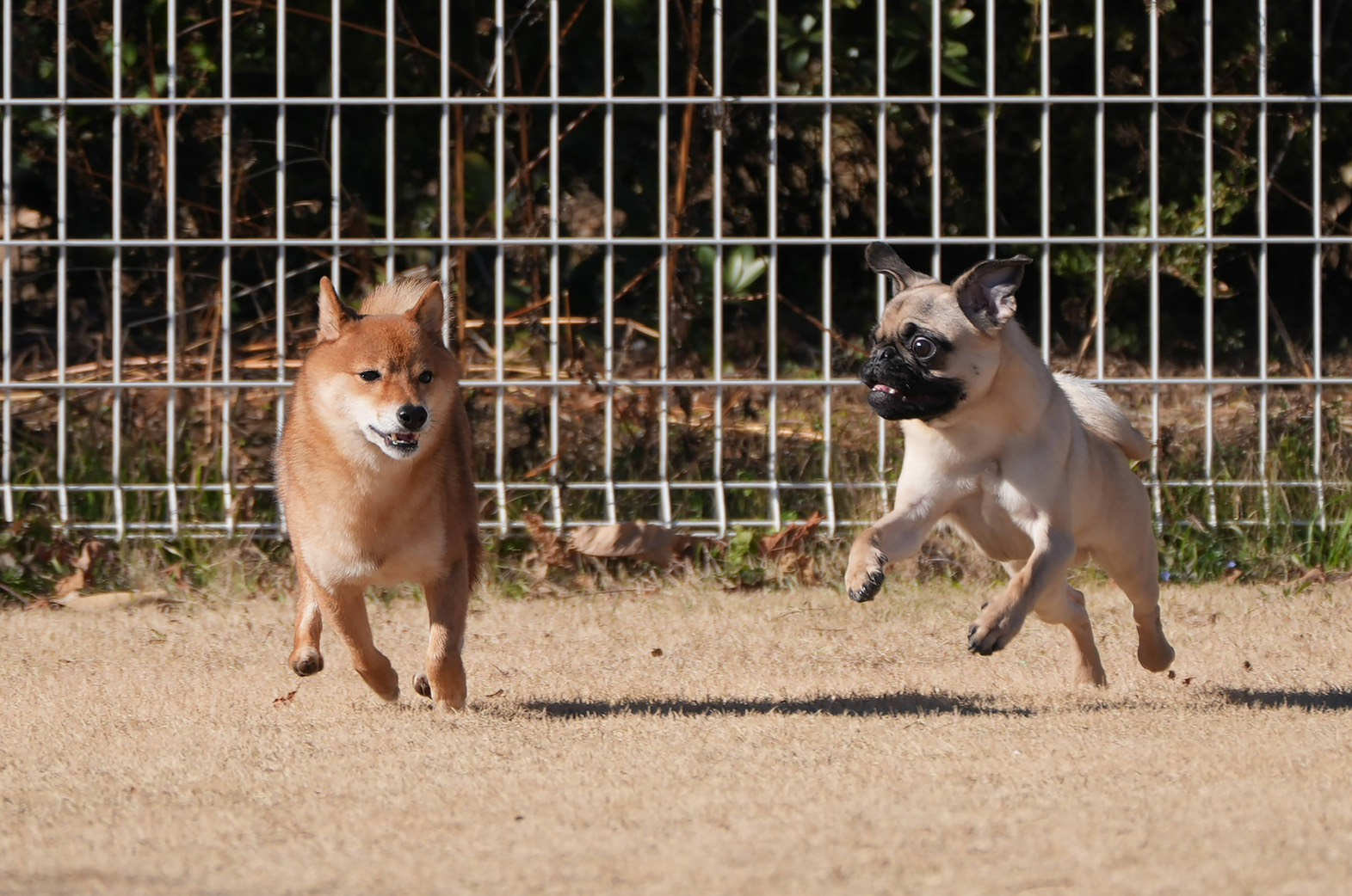 パグのガジュマルくんと、豆柴の豆太くんは、普段は保育園での交流は滅多にないのですが、ドッグランでは沢山遊んでいました❤️