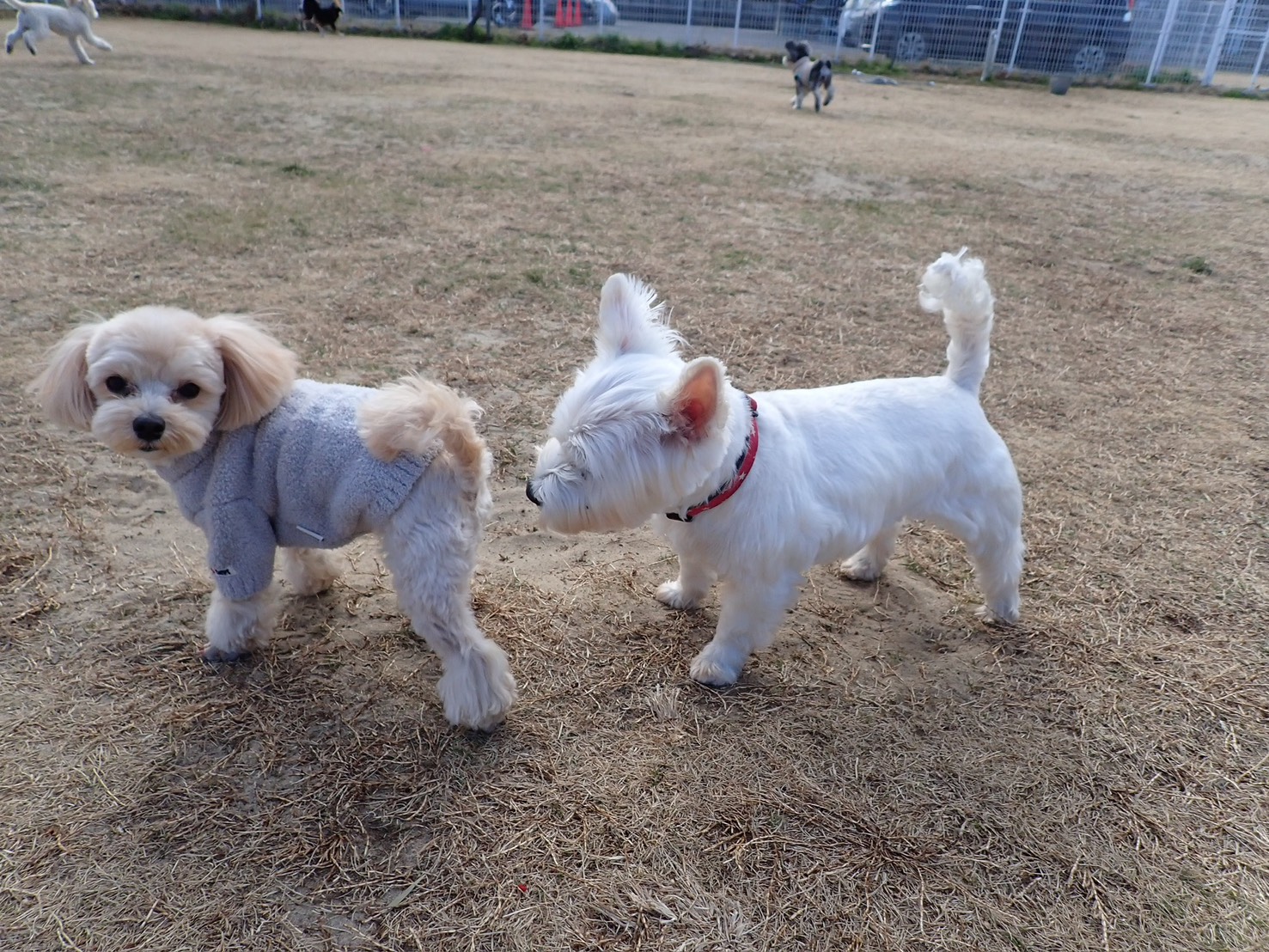 ウェスティのスコーンちゃんも、久しぶりに会ったマロちゃんと、ご挨拶を楽しんでいました!