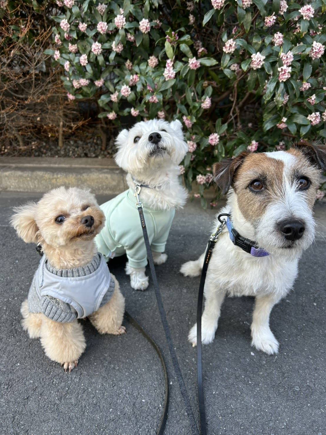 トイプーのシェリーくん、ウェスティのスコーンちゃん、ジャックラッセルのたけるくん