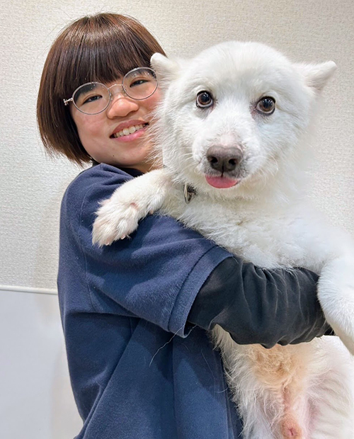 私は小さい頃からわんちゃんがそばにいたので、わんちゃんと共に暮らすことが、いつしか当たり前になっていました。そして、現在もトイ・プードルの女の子と暮らしています♡わんちゃんも人も笑顔に過ごせるようなサポートを、精一杯頑張ります!